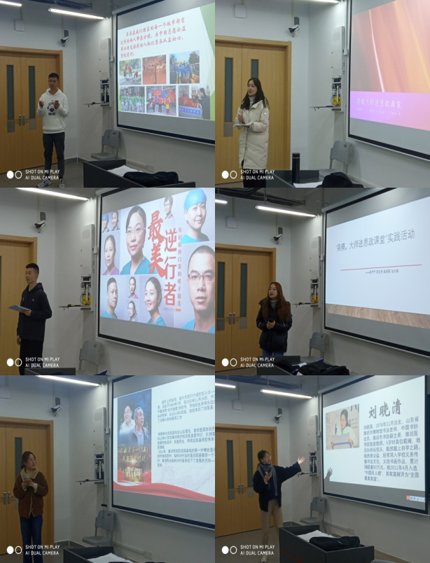 在实践教学活动中,授课老师带领全体班级学生学习国家勋章、国家荣誉称号获得者,最美奋斗者、改革先锋、时代楷模、道德模范、劳动模范、青年五四奖章获得者、三八红旗手、大国工匠、最美人物、教书育人楷模、中国好人、安徽好人、抗疫先进个人等先进人物和英模大师的感人事迹,并且组织学生开展讨论活动。(撰稿:杨婷婷  图片:杨婷婷 初核:陈昀岚 审定:陈明海)