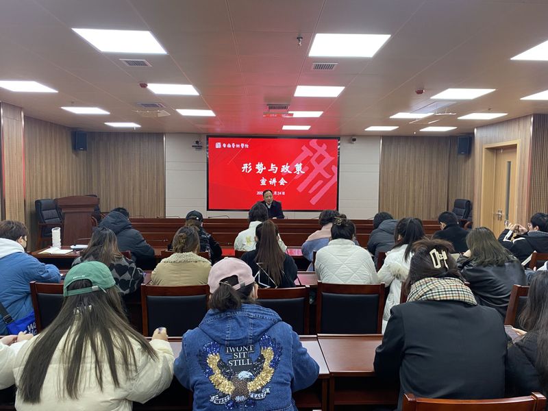 2021年12月24日,校党委书记周明洁在综合楼717教室为美术设计系20级数字媒体艺术专业学生讲授《形势与政策》课程。周明洁的课以宣讲十九届六中全会精神为主题,有针对性地帮助学生进一步提高对党的认识,使学生切实做到知史爱党、知史爱国。他强调,作为新时代大学生,理解并牢记党的初心使命至关重要。人无精神则不立,国无精神则不强。良好的精神状态是做好一切工作的前提。