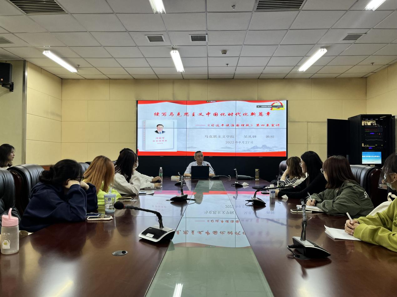 根据学校党委关于做好学习宣传贯彻《习近平谈治国理政》第四卷的精神要求,党委宣传部和马克思主义学院共同组建以马克思主义学院骨干教师为成员的《习近平谈治国理政》第四卷宣讲团。9月26至9月29日,宣讲团成员深入课堂,面向全体在校大学生作《习近平谈治国理政》第四卷宣讲,引发热烈反响,在大学生中兴起了《习近平谈治国理政》第四卷的“学习热”。