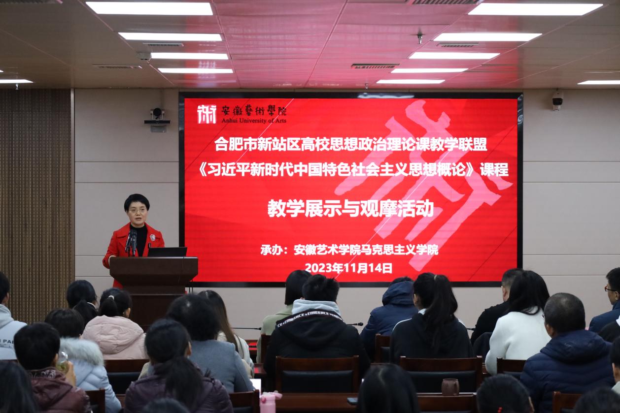 11月14日下午,合肥市新站区高校思想政治理论课教学联盟(以下称“教学联盟”)《习近平新时代中国特色社会主义思想概论》课程教师教学展示与观摩活动,在我校综合楼717会议室圆满落幕。校党委书记韩军出席活动并致辞。
