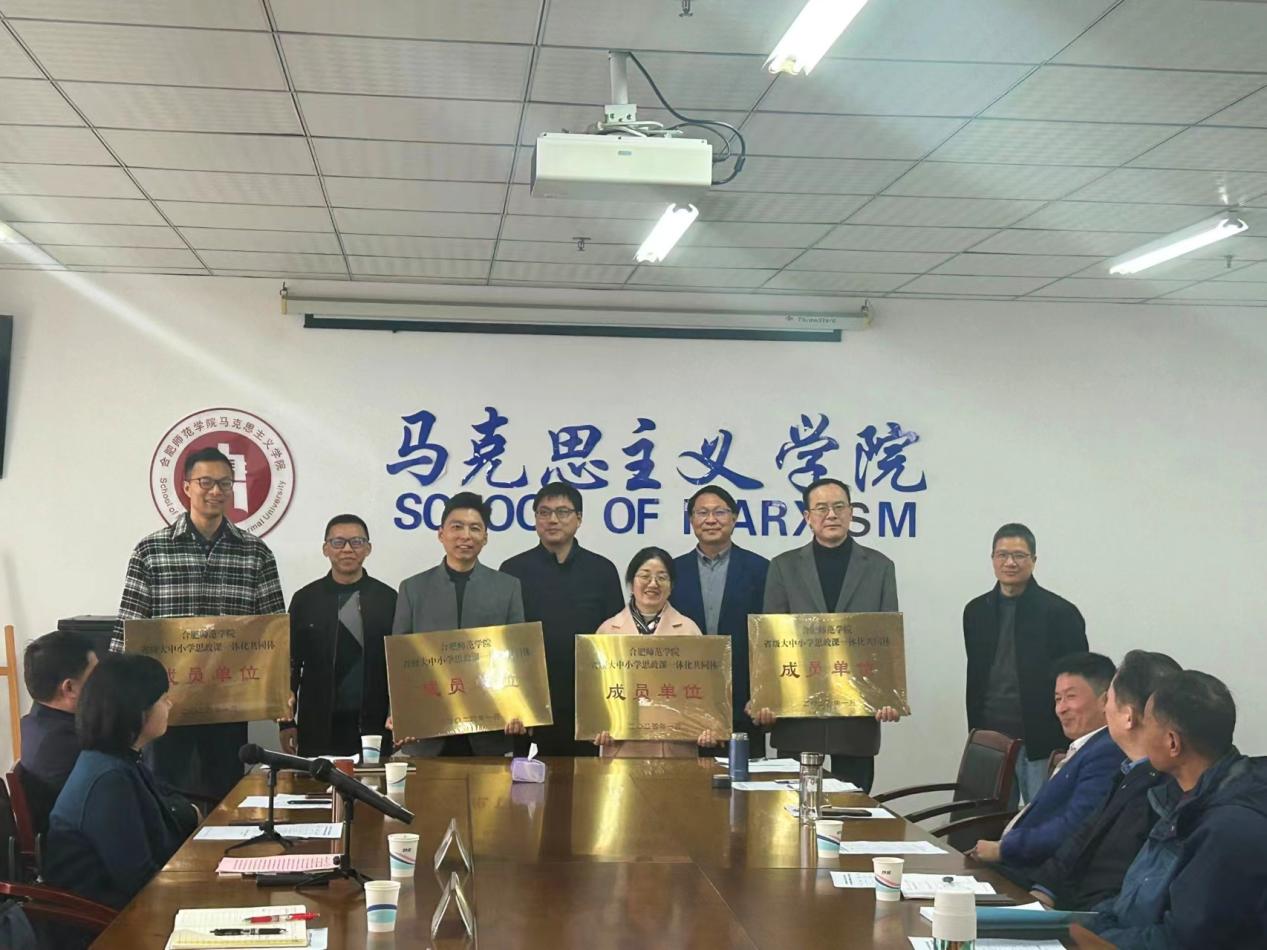 2024年3月18日,由合肥师范学院牵头的省级“大中小学思政课一体化共同体”研讨会成功举办。会上,25家共同体成员单位获得授牌。合肥师范学院副院长周端明、合肥市教育局高教处处长韦学华出席会议并讲话。