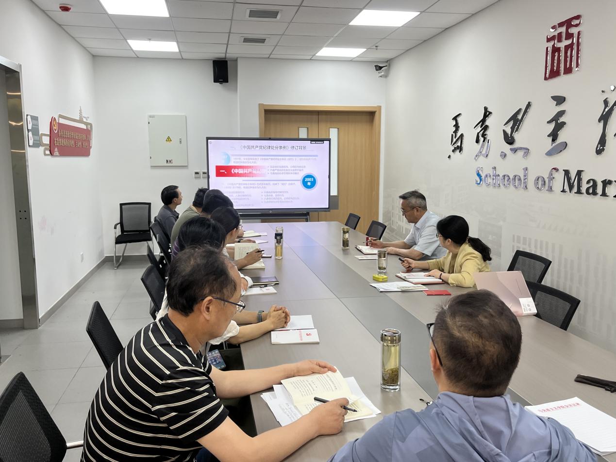 为扎实推进党纪学习教育走深走实,强化党员的纪律意识和规矩意识,根据党纪学习教育学习计划,6月18日下午,马克思主义学院直属党支部召开“党纪学习教育”专题党课报告会。支部书记陈昀岚为全体党员解读《中国共产党纪律处分条例》。