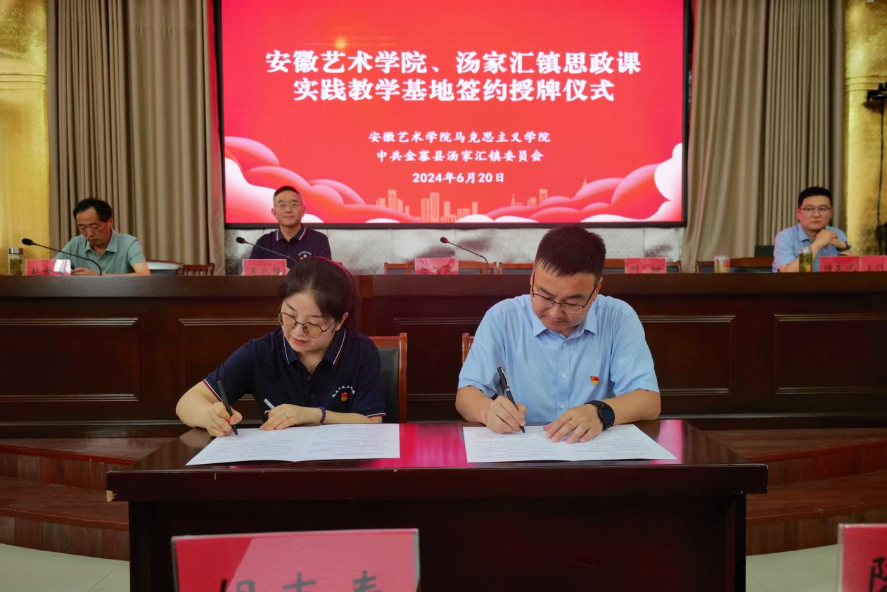 6月20日下午,签约会在汤家汇镇政府大礼堂举行。汤家汇镇党委书记叶甜首先对马克思主义学院一行表示热烈欢迎,并简要介绍了汤家汇镇的红色资源。他表示,汤家汇镇丰富的红色遗存是开展大学生思想政治教育的天然课堂,希望双方以此为契机,深挖当地红色资源,为博业体育(中国)官方网站-登录入口思政课实践教学改革赋能。马克思主义学院直属党支部书记陈昀岚对汤家汇镇党委政府领导同志的热情接待和对实践基地建设所给予的大力支持表示诚挚感谢,并表示未来将定期组织学生来此开展形式丰富的思政课活动,以革命文化丰富思政课教学,把思政课小课堂和社会大课堂起来,更好发挥思政课立德树人关键课程的作用。会议由汤家汇镇镇长储友斌主持,马克思主义学院一行及汤家汇镇相关领导出席了签约仪式。
