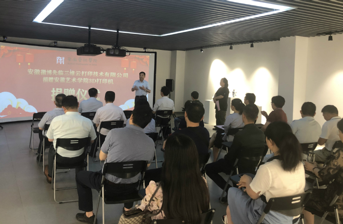 6月12日,安徽徽博先临三维云打印技术有限公司向我校捐赠十台3D打印机设备。捐赠仪式在美术楼二楼展厅举行,学校领导、相关职能部门负责人、美术设计系部分教师出席仪式。