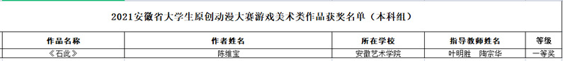 近日,2021安徽省原创动漫大赛落下帷幕,博业体育(中国)官方网站-登录入口美术设计系数字媒体艺术专业多位学生取得优异的成绩,获得三个一等奖、两个二等奖、一个三等奖。