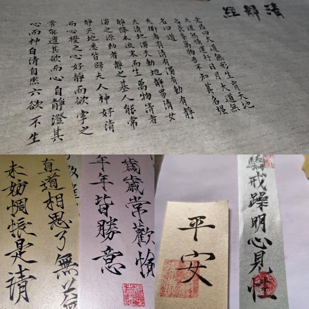 张成龙同学表示,寒假期间,为提高自己的思想素质和专业能力,在家中临古摹今,努力提升自己;李煜同学也在家进行书法学习,用铁