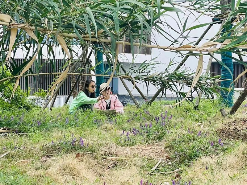 清晨,一群身背画夹,来自美术设计系绘画专业的学生成了“早起的鸟儿”,他们游览校园一圈后,选中各自理想的角度,支起画架开始绘画。油画教研室的教师徐应枝对校园的景色赞不绝口,他一边指导学生,一边在接受采访时说到,“校园的景色很美,蓝天、白云、灰白相间的美术楼,层次感很强,又搭配上高低错落有致的新徽派建筑,风格鲜明,不逊色于我们之前去的写生基地。”