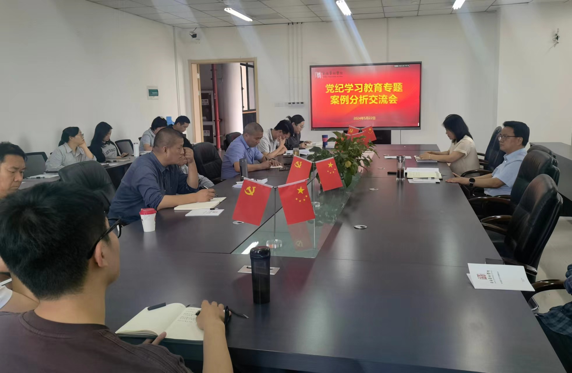美院党纪学习教育|5月22日在美术楼307会议室,美术学院召开党纪学习教育专题案例分析交流会,会议由美术学院党总支书记陈明海主持。