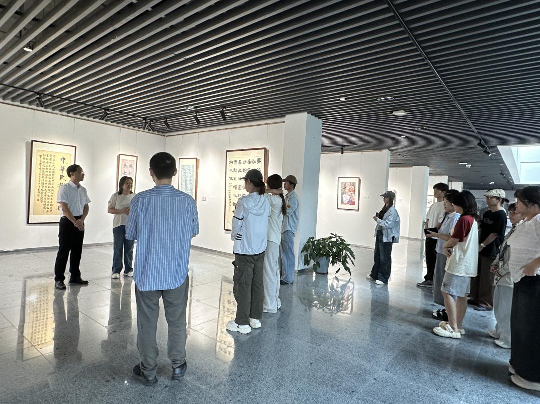 2024年9月30日上午,第二届“民族团结一家亲”书画大赛作品展在美术楼一楼展厅开幕。校党委统战部部长尹广富参加开幕式,美术学院副院长、美术学院党总支统战委员李李主持开幕式。