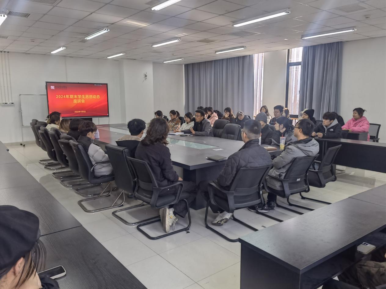 202516日,美术学院在美术楼307会议室召开了期末学生思想动态座谈会。党总支副书记李卫国出席会议,学管办、团总支负责人、各班级辅导员以及学生代表共30余人参加此次座谈会。
