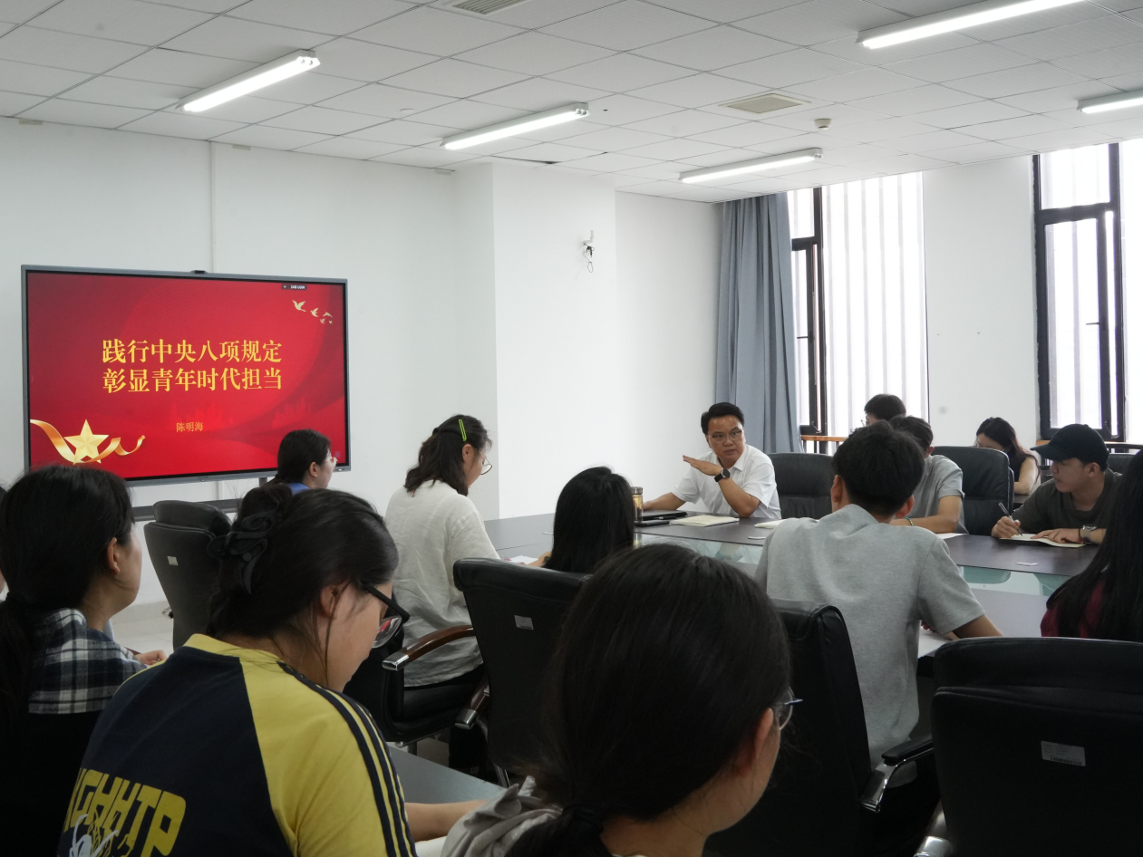 陈明海分别从五个维度展开系统讲解,首先结合党的十八大以来全面从严治党新形势的时代背景,阐释八项规定的历史意义;逐条解读改进调查研究、精简会议活动等八项规定的具体要求与核心内涵;通过教育系统违反八项规定典型案例的“活教材”开展警示教育;强调新时代青年党员要扣好廉洁从政的“第一粒扣子”,自觉担起责任,在服务师生、社会实践中学以致用,确保学习教育转化为发展成效。