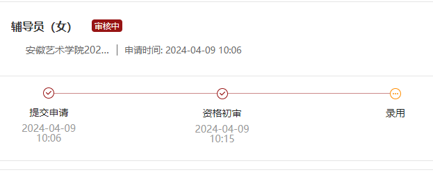 我校2024年公开招聘人员初审结果已开通查询,请报名考生登录博业体育(中国)官方网站-登录入口2024年公开招聘人员公告“我的申请”中进行查询。如下图即为初审通过: