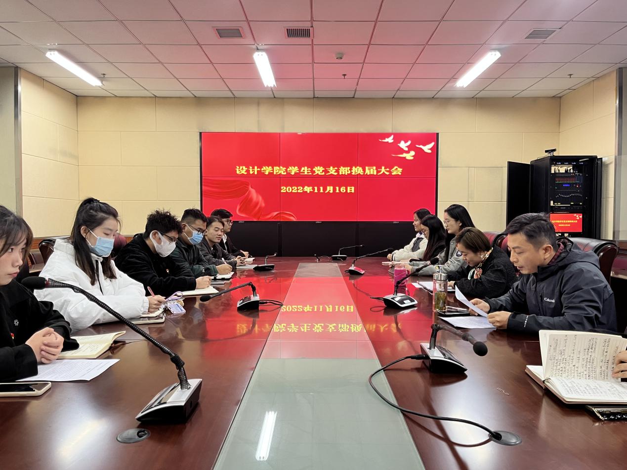 为进一步加强基层党组织建设,充分发挥党支部的战斗堡垒作用和党员先锋模范作用,增强基层党组织的创造力、凝聚力和战斗力,经校党委同意、批准,,11月16日下午,设计学院学生党支部在设计楼第二会议室召开支部换届选举大会,大会由学生党支部宣传委员管璐瑶主持,组织员何亦邨列席。大会开始,全体起立奏国歌。支部书记王从启向党员大会作了工作报告,全面总结回顾了设计学院学生党支部近年来的工作成效,客观分析了存在的问题和不足,并对下一届支委提出了建议。会议按照选举议程,在充分酝酿下届支部委员会候选人的基础上,采取无记名投票的方式差额选举。经投票表决,王亚鹏、管璐瑶、郗文静,当选设计学院学生党支部委员会委员。随后,新一届支部委员会召开了第一次支委会,选举产生了支部书记,并对支部委员进行了分工。新一届支部委员纷纷表示,将立足新起点,进一步强化使命担当,认真履职尽责,严守纪律规矩,以饱满的热情、充沛的精力和务实的作风,推动支部党建工作再上新台阶,用党建引领业务发展,为设计学院的发展作出积极贡献。(撰稿:马家豪 王亚鹏;摄影:马家豪;初审:王亚鹏;复审:夏守军;终审:陈明)