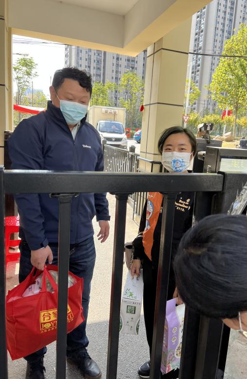 10月14日中午,设计学院党总支为两名居住小区被封控的辅导员送去应急物资,帮助她们解决实际困难。(撰稿/摄影:何亦邨 初审:王亚鹏 复审:夏守军 终审:陈明)