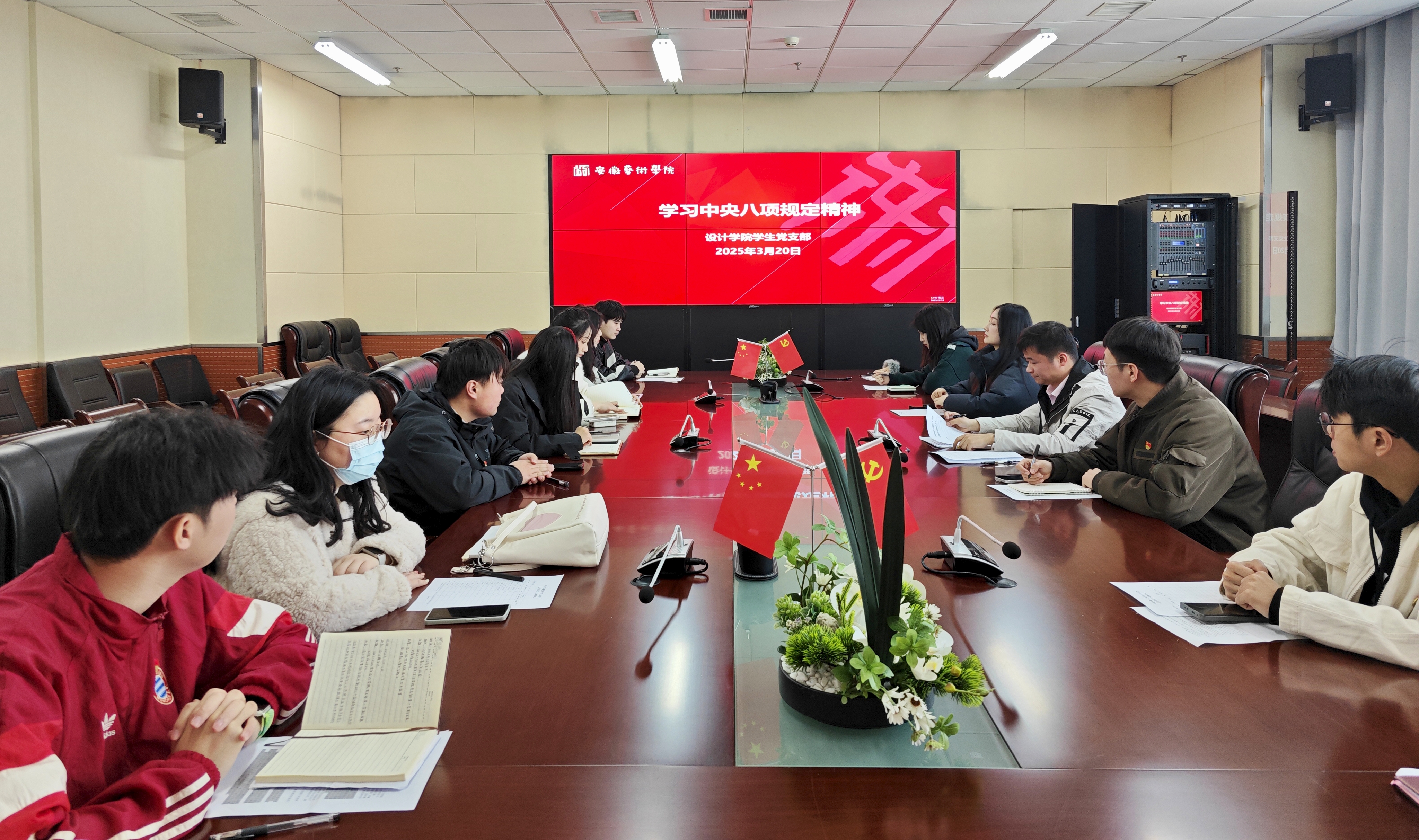 为深入贯彻落实习近平总书记关于深入贯彻中央八项规定精神学习教育的重要指示,根据中共中央办公厅《关于在全党开展深入贯彻中央八项规定精神学习教育的通知》部署,通过深化理论学习,推动作风建设常态化长效化。近日,设计学院学生党支部于设计楼403会议室开展专题学习教育活动。支部全体学生党员和部分入党积极分子参加,会议由学生党支部书记黄威主持。会上,黄威首先传达了党中央关于深入贯彻中央八项规定精神学习教育的相关文件和会议精神,强调了此次学习教育的重要性和紧迫性。黄威着重强调了中央八项规定精神在校园生活中的实际应用,学生党支部要带头深入学习贯彻,引导青年学子塑造正确世界观、人生观、价值观,为学子成长成才筑牢品行操守底线。他要求全体党员在校园活动中,避免铺张浪费;在与同学交流中,要切实为同学解决问题,不搞形式主义;在参与学生工作时,要杜绝官僚作风,真正做到为同学服务。随后,支部纪检委员郗文静带领全体同志学习了《关于在全党开展深入贯彻中央八项规定精神学习教育的通知》和《中央政治局关于改进工作作风、密切联系群众的八项规定》文本内容,通过详细解读,党员们对中央八项规定精神有了更加全面和深入的理解。通过此次学