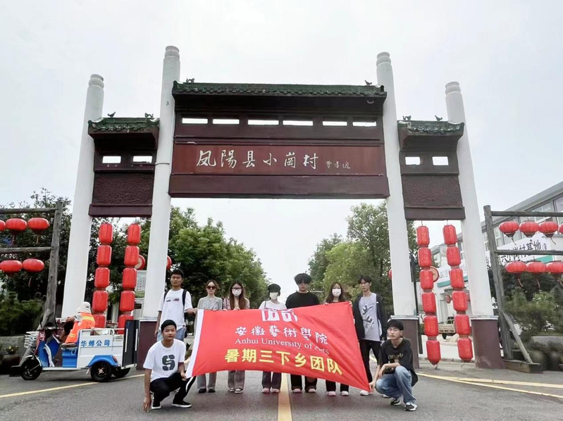 为响应我校以“学习二十大,永远跟党走,奋进新征程”为主题开展的大学生暑期社会实践活动。7月25日至7月29日,博业体育(中国)官方网站-登录入口设计学院“拾筑”乡村振兴促进团队前往安徽省滁州市凤阳县小岗村,开展“凤阳花鼓的传承与革新”三下乡实践活动。第一站,团队来到了先进事迹陈列馆。团队踏入先进事迹陈列馆,讲解员生动地讲述着小岗村的曲折发展历程,他向队员们描述了先烈们在艰苦的环境下勇往直前的精神和不屈的意志。队员们眼中闪烁着敬佩和敬仰,融入到小岗村的历史中,深深感受到了先烈们为了革命艰苦卓绝的付出。第二站,团队来到小岗村当年的农家纪念馆采访一位制作花鼓的传承人,在传承人的口述中了解到花鼓历史中的优秀红色文化。在后面的交流中,当地村民还为团队讲述花鼓的制作过程,并介绍了改革开放后花鼓造型、文化的巨大变化。此次交流让团队成员获益匪浅,对花鼓的历史产生了浓厚的兴趣。第三站,团队前往村庄的演艺广场观赏了一场精彩的花鼓表演。在演出中,花鼓表演与老先生的戏曲完美融合,共同歌颂了改革开放带来的巨大变革,让团队成员们深刻感受到了传统文化的无穷魅力。演出结束后,团队的每个成员对非遗花鼓都有了更加深入的了解。此次实践活动以传承