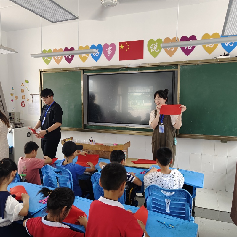 为弘扬中华民族优秀传统文化,发挥青年志愿者团结、友爱、奉献、互助、进步的志愿者精神,充分让孩子们享受更广阔的学习世界。6月16日下午,设计学院团总支学生会组织学生干部走进长丰县下塘镇中心学校开展助学支教志愿服务活动,为孩子们送上有趣的手工教学课程——剪纸、扭扭棒及黏土制作。团总支书记徐阳阳参与活动。下塘镇中心学校校长杨清梅对此次志愿服务活动表示热烈欢迎,并与徐阳阳对后期如何开展此类活动、建立良好合作关系进行深入交流。活动中,青年志愿者们详细地向小朋友们讲解剪纸、扭扭棒和黏土的材质、使用方法以及制作步骤,并强调安全注意事项。通过志愿者们耐心细致地讲解,孩子们发挥创意,认真创作起来,一张张彩纸在孩子们手中上下飞舞,一朵朵鲜艳的黏土“花朵”美丽绽放,一个个生动有趣的扭扭棒造型顺利完工。本次助学支教志愿服务活动,让孩子们在学习生活之余感受到手工创作的魅力,提高了孩子们的动手能力,更让他们了解非遗、爱上非遗,体会到指尖艺术的原生态之美。也让大学生志愿者们立足实践,发扬“雷锋”精神,用自身特长服务社会,真正做到协同育人的 “大手牵小手”。(撰稿:余昊先 摄影:余昊先编辑:刘滨燕 初审:王亚鹏 复审