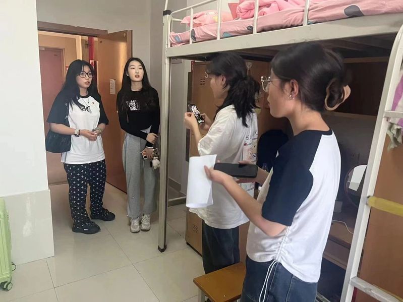为深入了解新生的入校情况,关心问候新同学,有序、平稳地推进迎新工作,9月7日下午6点,设计学院党总支书记陈明,副院长撒后余,学管办负责人王亚鹏,各辅导员以及学生党支部深入2023级新生寝室,送去学院的关怀和温暖,表达对新同学的欢迎和慰问。