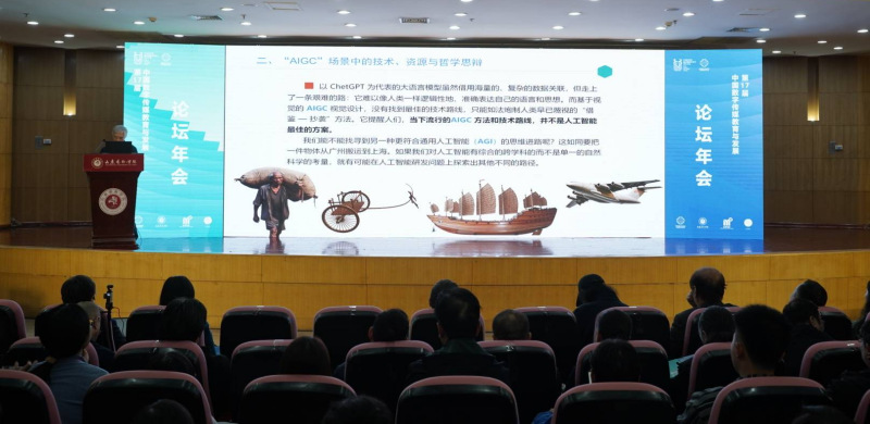 本届论坛年会围绕人工智能艺术发展对高校课程与教学改革的影响、人工智能与艺术融合和创新等问题展开探讨。教育部高校动画与数字媒体专业教指委副主任、深圳大学二级教授、国家级教学名师、博士生导师田少煦教授,教育部高校动画与数字媒体专业教指委委员、浙江传媒学院设计艺术学院院长、博士生导师康修机教授等8位知名学者结合各自研究领域,就数字经济、国家文化数字化战略,数字虚拟角色的生态与伦理、艺术疗愈与设计意识、绿色设计与可持续城市等相关理论与实践方面内容发表了主旨演讲。