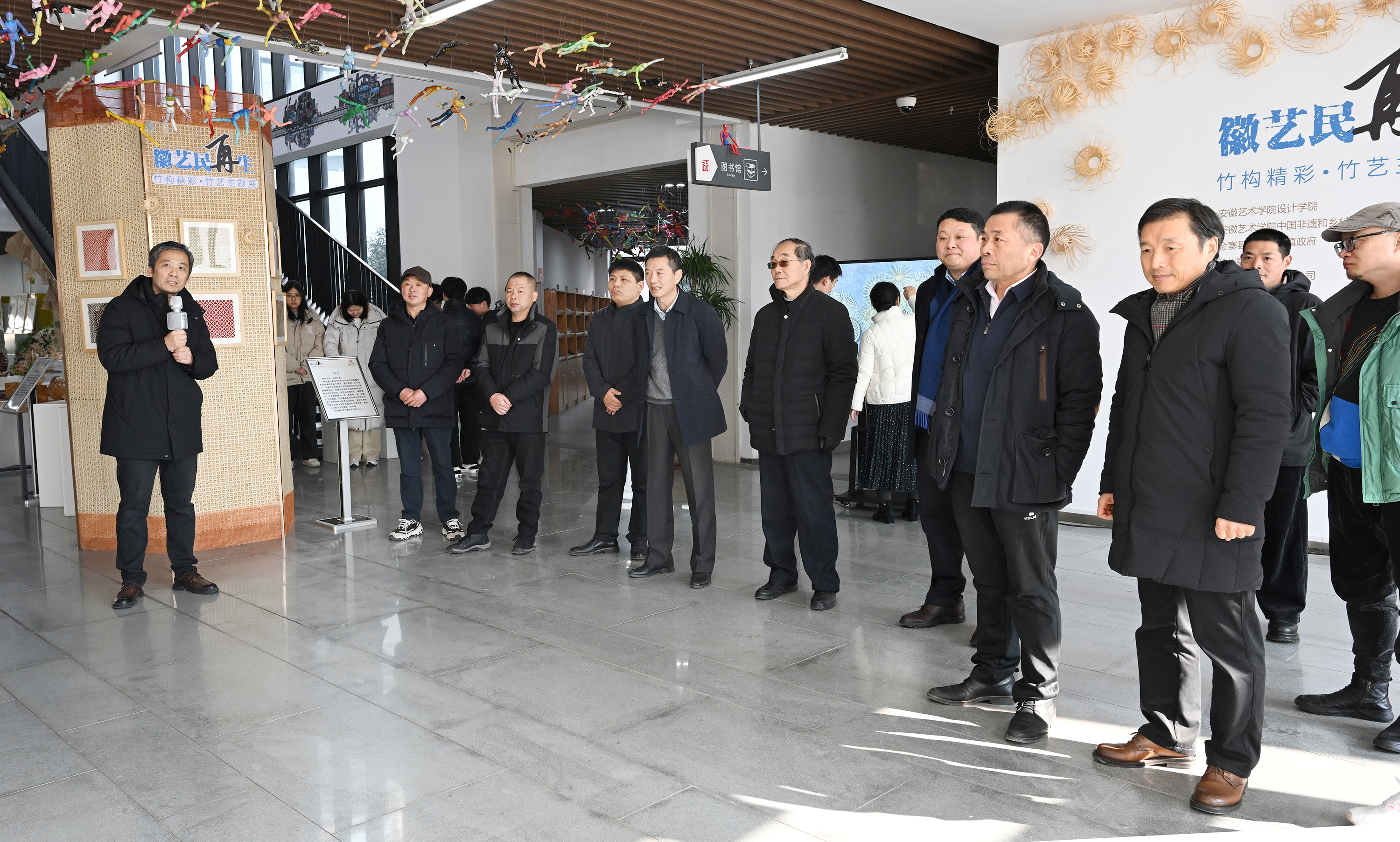 12月25日上午,徽艺民(再)生系列主题“竹构精彩”竹艺作品展在博业体育(中国)官方网站-登录入口设计学院开幕,博业体育(中国)官方网站-登录入口校长、党委副书记樊嘉禄,博业体育(中国)官方网站-登录入口副校长、安徽省美术家协会主席陈林,金寨县茶美中心党组书记、主任张勇,金寨县流波䃥镇镇长朱永章等县镇领导以及国家级竹编舒席传承人苏成军,我校研究员、国家级工艺美术大师洪建华等参加开幕仪式。