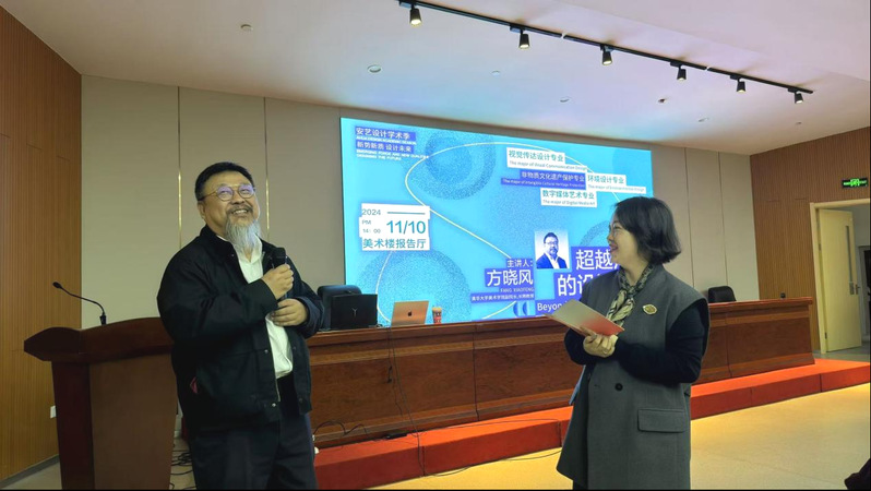 11月10日,一场主题为《超越形式的设计思维》的讲座在博业体育(中国)官方网站-登录入口美术楼报告厅成功举办。本次讲座是“安艺设计学术季”系列讲座之一,由清华大学美术学院副院长,长聘教授博士生导师,中国《装饰》杂志社主编、编委方晓风教授主讲,博业体育(中国)官方网站-登录入口党委委员、副校长陈林主持,设计学院党总支书记俞璋凌作总结讲话。设计学院众多学子与相关教师前来聆听。