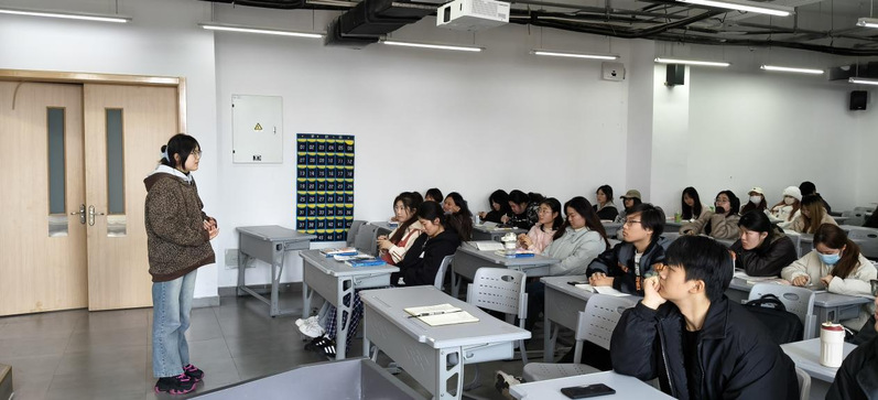 班会伊始,黄威从学风建设与全面发展的关系切入,强调学风是学生综合素质的体现,也是高校人才培养的核心,同时强调建成良好的学风必须依靠每一位同学的努力。黄威详细分析了今年的今年省考情况并动员班级同学认真备考四六级,通过案例分析,指出优良学风能够激发学习动力、提升教学效果,同时呼吁学生在规划学业与职业发展中做到“仰望星空、脚踏实地”。