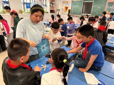 此次蓝染课程是设计学院“非遗技艺进校园”系列活动之一。也是非遗保护专业响应《安徽省“十四五”非物质文化遗产保护传承行动计划》文件精神,践行“高校+小学联动,搭建非遗传承新模式” ,构建文化育人共同体,培育非遗传承新生力量的重要举措。