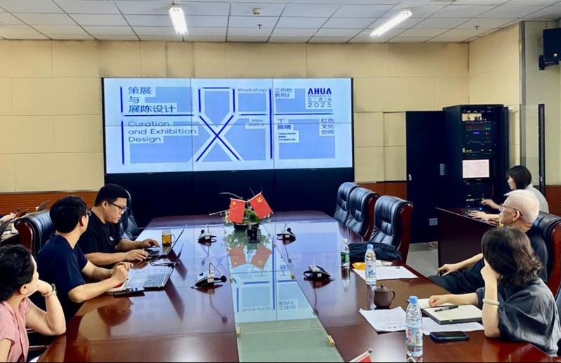 会上,各专业轮流汇报本学期教学成果。在邬烈炎教授的前沿理念引导下,学生作品突破传统作业形式,展现出鲜明的实践性与跨界融合特征:环境设计专业通过精妙的实体模型解构空间叙事逻辑;视觉传达设计专业聚焦文旅产业,构建了系统性的品牌与视觉形象设计方案;数字媒体艺术专业则深度融合交互技术与AI算法,推出一系列创新设计方案。工作坊模式下产出的真题实做项目,如城市更新调研、非遗活化设计等,彰显了知识转化与社会服务的深度结合。师生围绕作品展开高频互动,操作工坊设备、调试数字模型的场景随处可见。这种打破学科壁垒、强调问题解决的教学革新,显著提升了人才培养与行业需求的契合度。