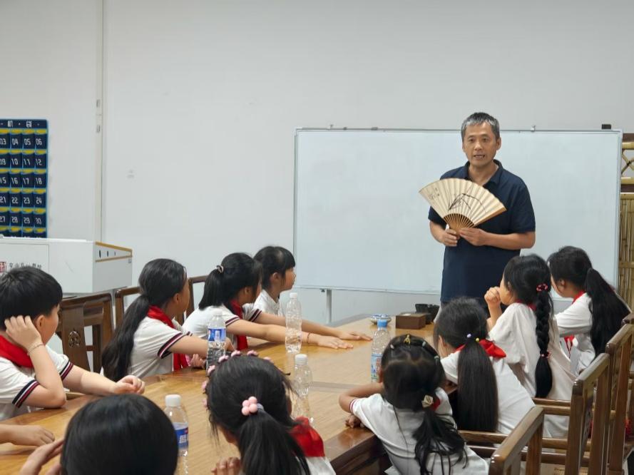 在实践环节,学生们在专业教师一对一指导下,亲手体验制扇过程,包括扇骨组装、扇面穿装与自主书画创作。孩子们尽情发挥想象力,绘出一幅幅充满童趣的扇面作品。在动手实践中,他们不仅感受到传统与创意结合的乐趣,也增强了对非物质文化遗产的认同和情感共鸣。