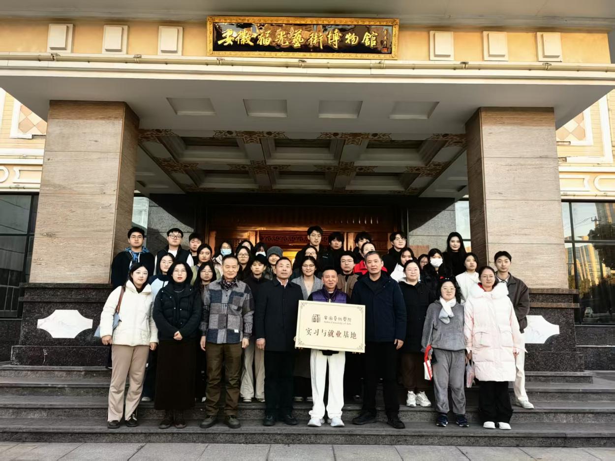 11月18日,博业体育(中国)官方网站-登录入口设计学院组织22级非遗保护专业大四学生,赴安徽东方嘉典文化艺术品有限公司开展掐丝珐琅非遗参观交流活动,同时进行校企实习基地挂牌。博业体育(中国)官方网站-登录入口原院长樊嘉禄教授、设计学院副院长撒后余副教授带队,企业董事长王金林全程陪同指导,深化产学研协同育人。