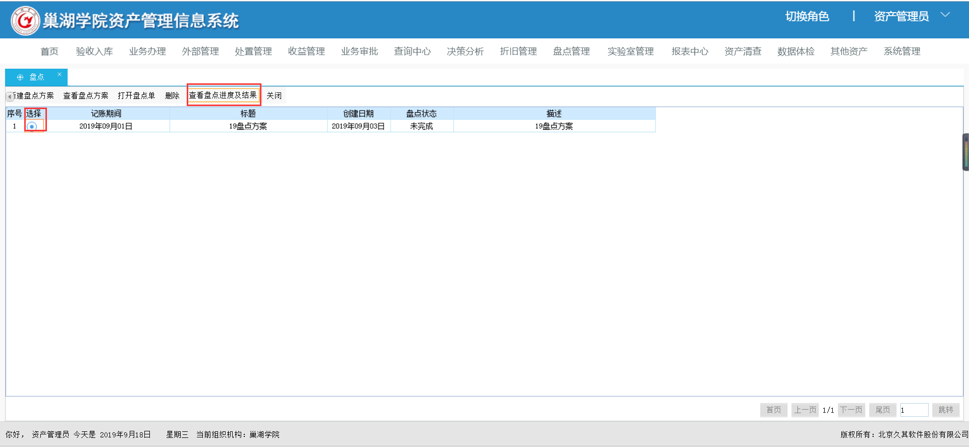 资产管理员查看盘点进度,督促部门管理员在规定的时间内完成资产清查