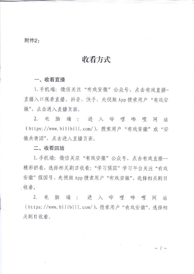 2.创新参与形式,注重实际成效。各团总支要结合教学实际,合理安排活动地点和形式,组织师生通过微信公众号、抖音、快手、央视频 App、哔哩哔哩网站等平台收看演出直播或回放,有效扩大活动的覆盖面和受益面,确保活动产生实效。