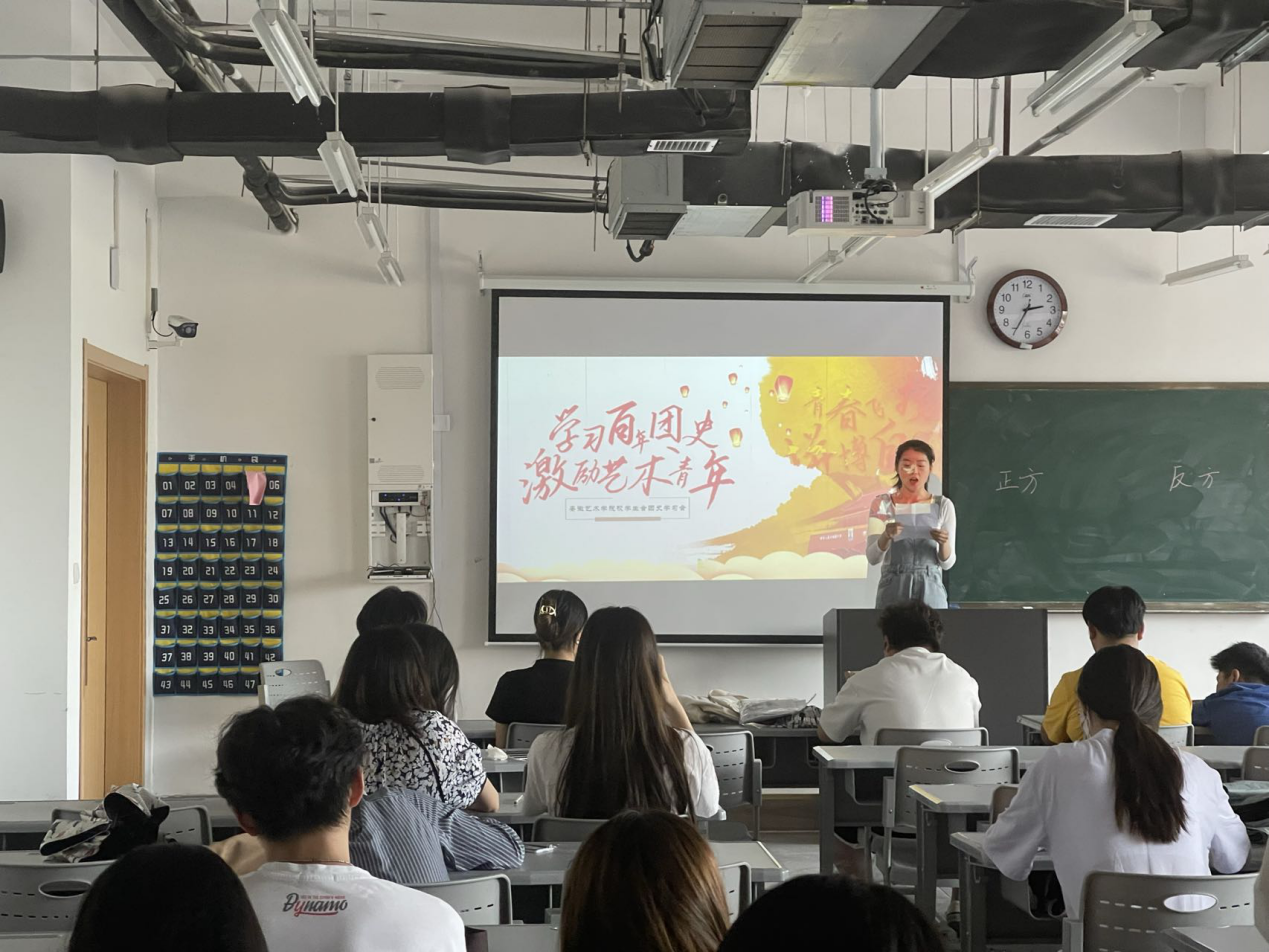 4月24日下午,校团委党支部指导校团委学生会在综合楼203教室开展主题为“学习百年团史,激励艺术青年”的学习会议,会议由主席团成员池威恺主持。