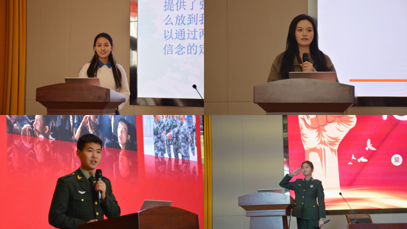 尚知雨和张璐媛都是退伍大学生,他们从自己入伍参军的经验来阐释宣讲主题。尚知雨向大家介绍了他大学入伍后的艰辛历程和在此过程中四次流下眼泪的原因,他用自己的经历告诉大家要坚持去做自己想做的事、要做的事、应该做的事,要不甘平庸,向上而生。张璐媛向我们讲述了她的军旅之梦,她说勇敢的人先享受世界,希望大家在大学的这四年里不负美好的青春年华,做一个有计划、有目标、有理想的人,规划好自己未来的人生路线,充实度过这四年的青春时光。