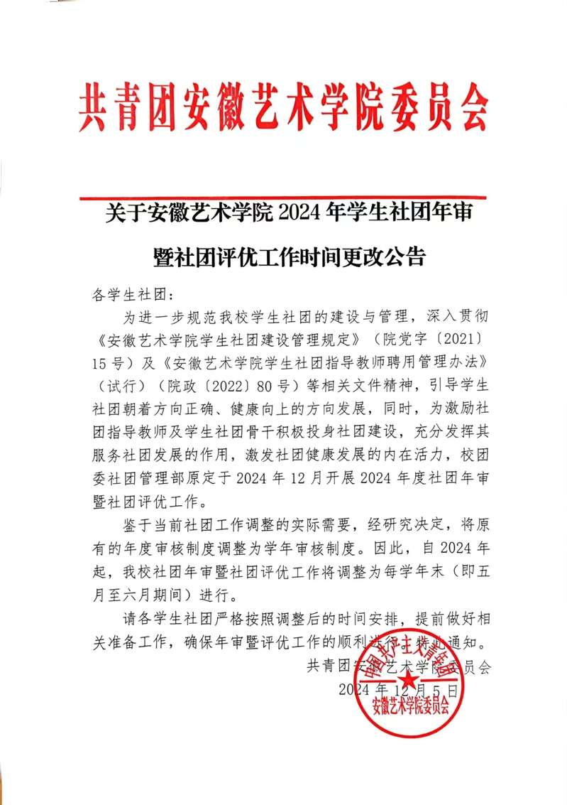 关于博业体育(中国)官方网站-登录入口 2024 年学生社团年审暨社团评优工作时间更改公告