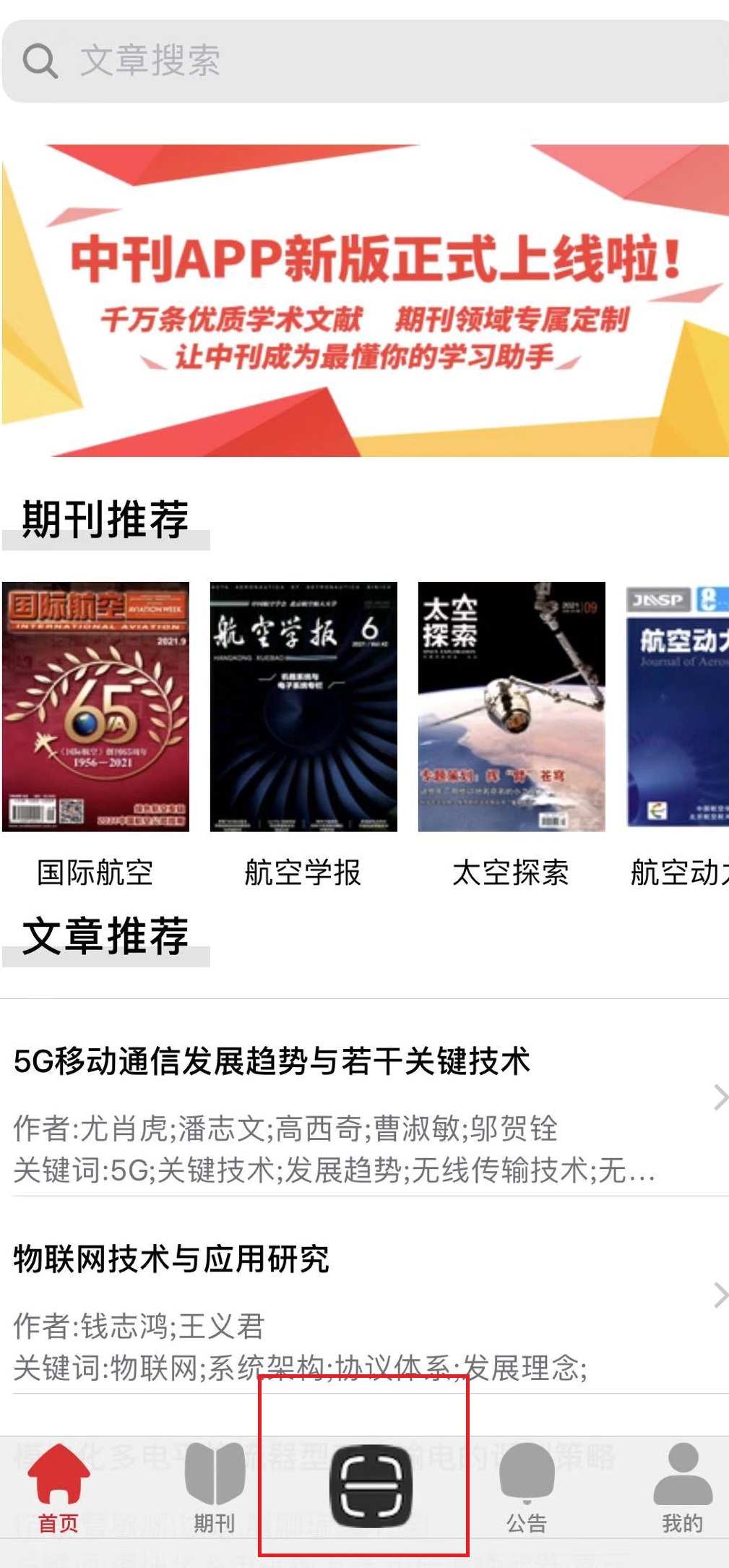 打开“中文期刊助手”APP首页的“扫一扫”扫描网站二维码