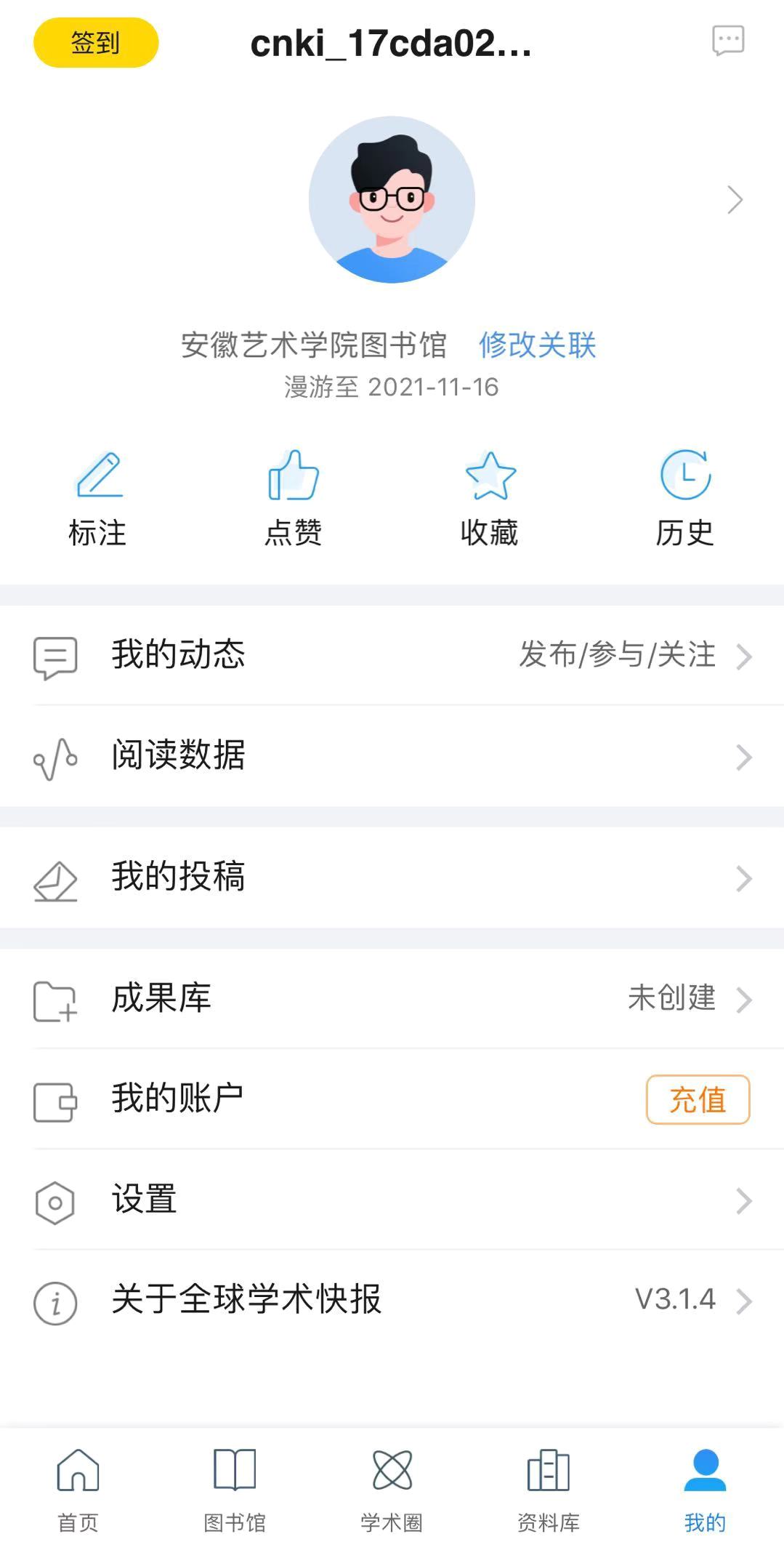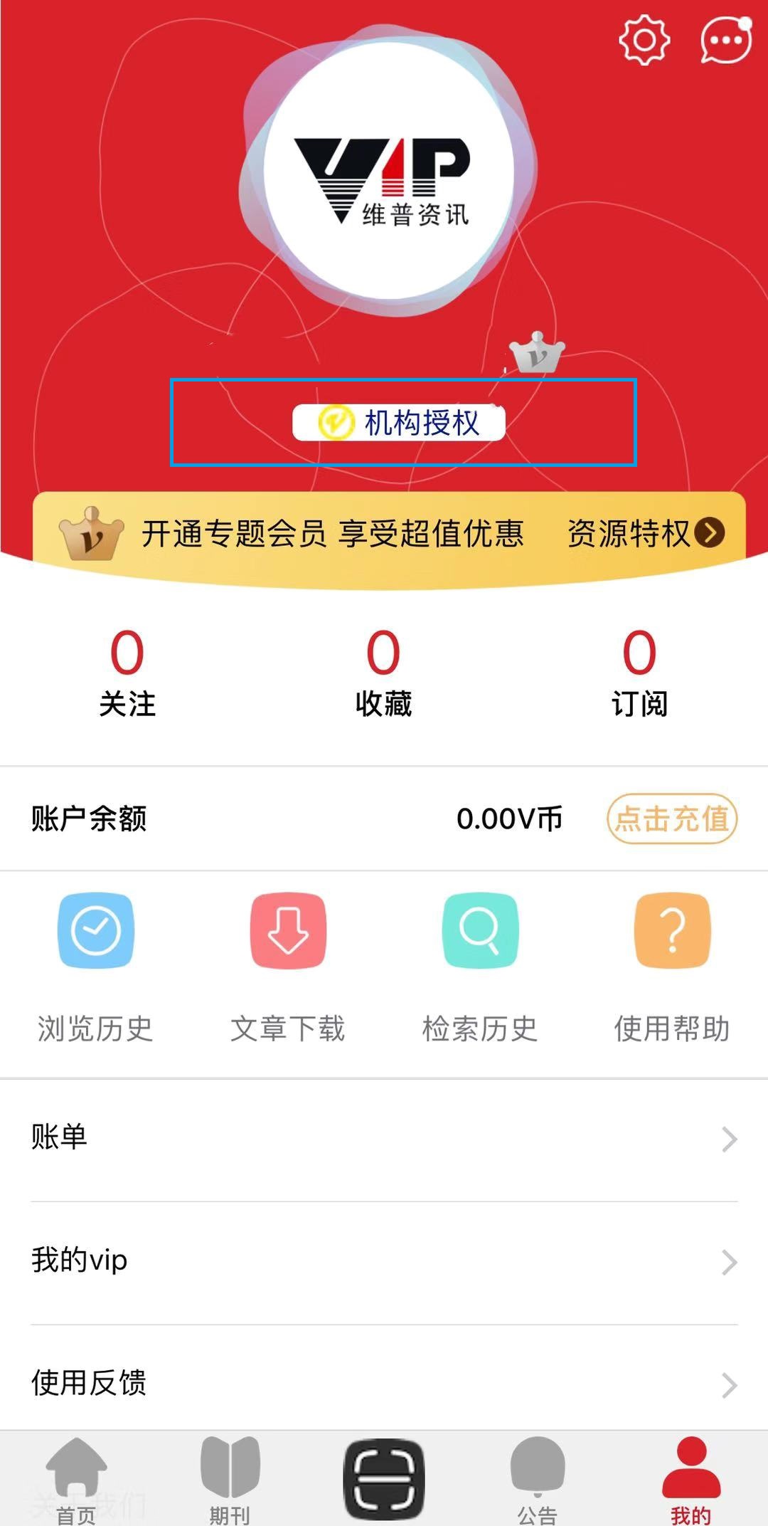 在学校ip范围内注册登录后,点击头像图标下方的“机构授权”选项。