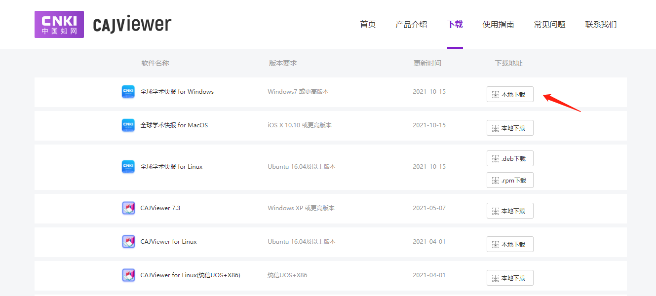 然后选择“电脑客户端”,点击“全球学术快报for Windows”右侧的“本地下载”安装应用程序。
