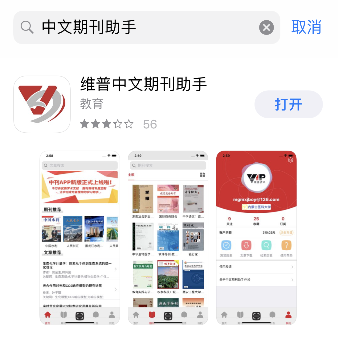 1、手机端:在手机应用商店搜索维普app——“中文期刊助手”,或直接扫描下方二维码进行下载。
