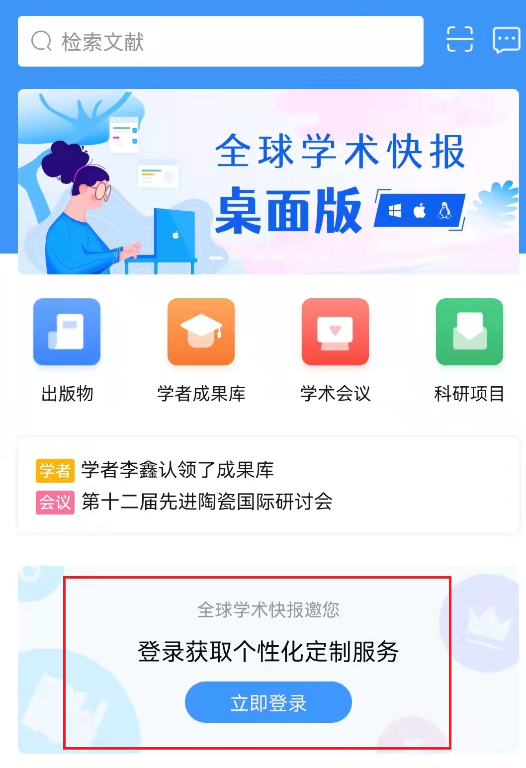 安装完成后,使用“全球学术快报”扫码登录个人账号,即可在校外使用pc端查找、下载文献。