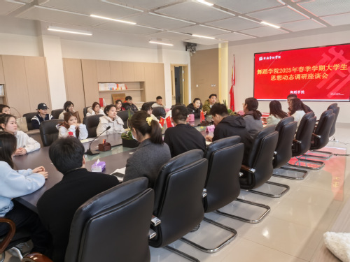 2025年春季学期开始,为深入掌握在校大学生思想动态,优化思想政治教育内容、方法和途径,系统全面地掌握学生在新学期的思想动态,倾听学生的心声、帮助学生解决实际问题,提高学生工作管理水平,促进学生的身心健康和全面发展,3月11日,舞蹈学院开展了春季学期学生思想动态调研座谈会。