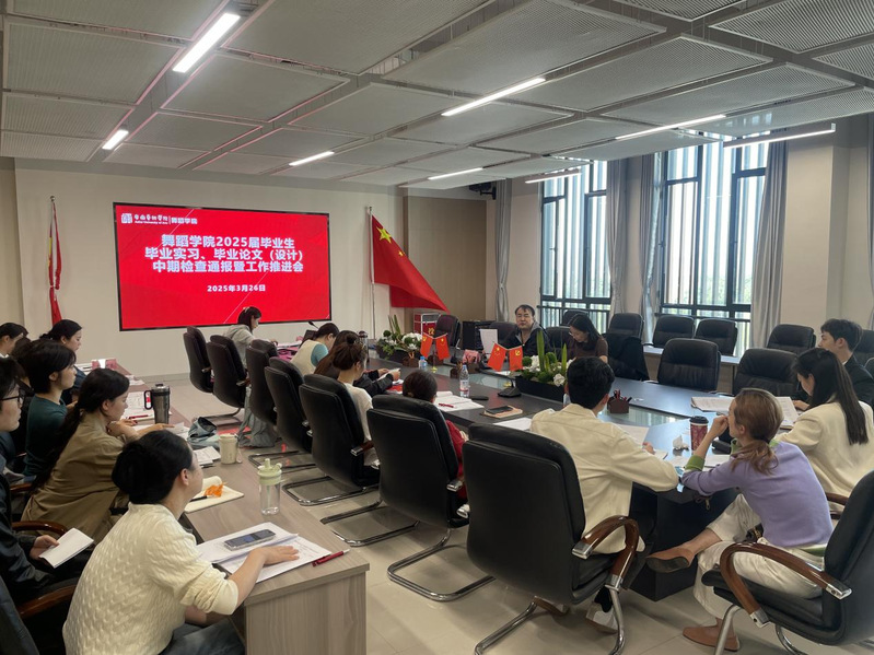 3月26日,舞蹈学院召开2025届毕业实习、毕业论文(设计)中期检查通报暨工作推进会,督促毕业实习、毕业论文(设计)工作提升质量、规范流程;对标本科教学合格评估要求,推动教学工作进一步规范化落实。会议由戴虎院长主持,学院全体专职教师参会。