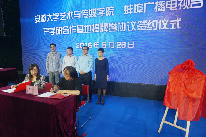 5月26日,院党委书记、院长周之虎率教务处与有关系部负责人,赴蚌埠广播电视台进行考察,并于当天下午与蚌埠广播电视台签署了产学研合作的协议。蚌埠市市委常委、宣传部部长王勇勇陪同进行了考察,现场见证了签字仪式,并为产学研合作基地揭牌。