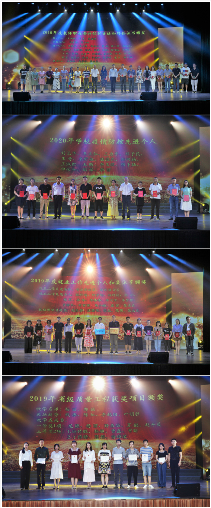 大会表彰了高萍萍等25名优秀教师,刘涛等39名先进工作者,刘长华等15名疫情防控先进个人,胡献平等45名院校设置突出贡献奖,周之虎等15名院校设置重大贡献奖。