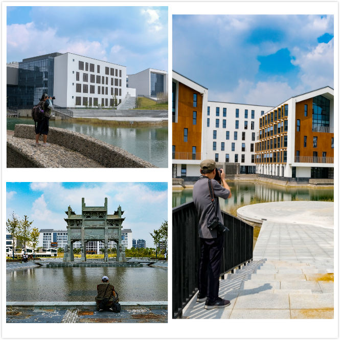 一个多小时的采风环节,各位摄影家们抓拍了我校2020级专升本新生报到的部分场景,更在校内各建筑、水系、草坪间流连忘返、构图成片;还有的用上了航拍,鸟瞰安艺。