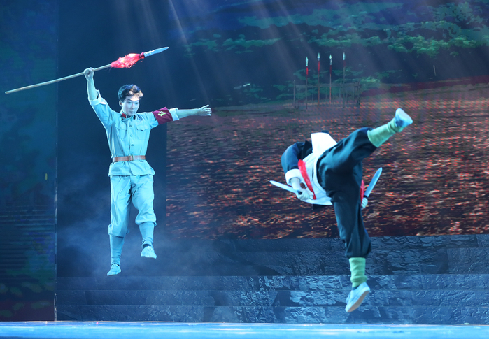 19点30分,当乐队的指挥棒扬起,交响乐《红旗颂》以深情的乐章拉开了演出的帷幕。在史诗般波澜壮阔的叙事中,中国共产党领导人民艰苦奋斗、矢志拼搏的百年奋斗征程,以艺术为载体,在观众眼前铺陈开来。演出以序及“初心谱华章”“使命筑辉煌”“复兴梦飞翔”三个篇章,再现了党的百年历史。