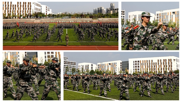 列队完毕,军训成果汇报表演开始。女子戏曲广播操、女子军体拳、女子格斗术、男子军体拳、男子格斗术轮番上演,赢得现场阵阵掌声和欢呼。