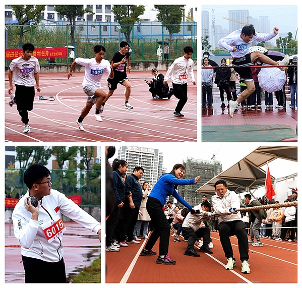 运动场上,田径赛事热火朝天,运动员们咬牙坚持,奋力拼搏,不断挑战自我极限,用顽强的意志诠释着更高、更快、更强的体育运动精神。枪声起,运动员们似离弦的箭冲向终点,赛场上的呐喊一声高过一声。操场中央,跳远、跳高、实心球三项赛事同时进行,地平线上划出各种漂亮的弧线。任凭七尺劲,横贯一条绳,拔河双方的力在同一条线上爆发,一局定胜负的赛制让场上的气氛更加紧张刺激,每一寸偏移都牵动人心。运动员们用行动诠释了竞争和合作、拼尽全力与永不放弃,点燃了全场的热情。