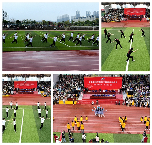 开幕式文艺演出在力与美的勃发中为各类赛事蓄势。各二级学院结合专业特色,分别带来精彩的武术、歌舞等节目,一首《青春安艺》更是实现了台上台下大联动,众多观众涌向会场中央载歌载舞,现场气氛推向高潮。