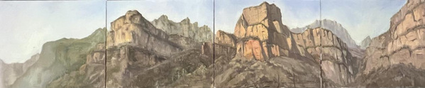 身处红色革命圣地,师生们深受伟大精神的鼓舞。李龙昊、郭志鹏、耿良宝、陈续同学集体创作《巍巍太行》,高磊同学创作《太行人家》,两副作品表现了东部太行山山势陡峻、峰峦峭拔的自然景观。